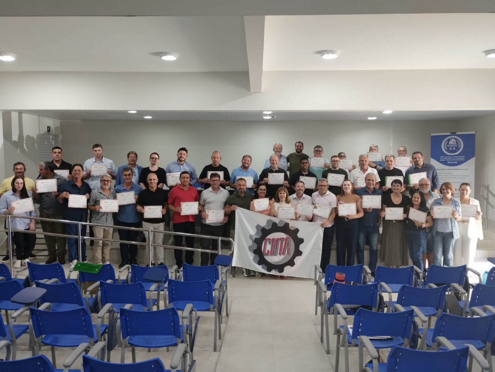 Foram assuntos do Seminário: “O Papel e Desafios do Movimento Sindical na Saúde e Segurança do Trabalho” – apresentado por Artur Bueno de Camargo Júnior: Vice-Presidente da CNTA e “NR 36 e Doenças Ocupacionais” – por Luiz de Bittencourte, Secretário da Saúde – Força Sindical SC.