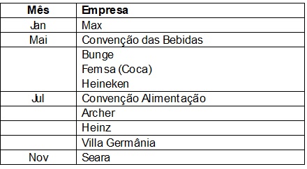 Calendário de negociações do SITIALIM.